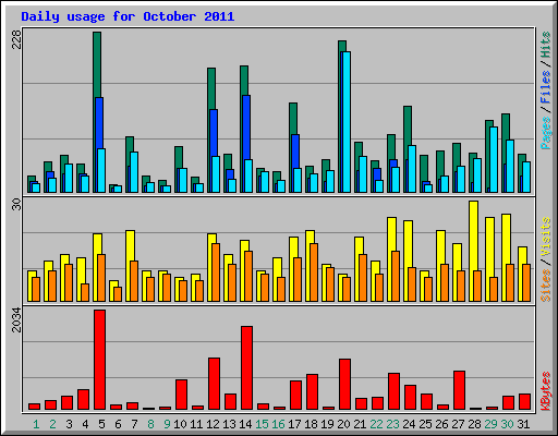 | Day | Hits | Files | Pages | Visits | Sites | KBytes | ||||||